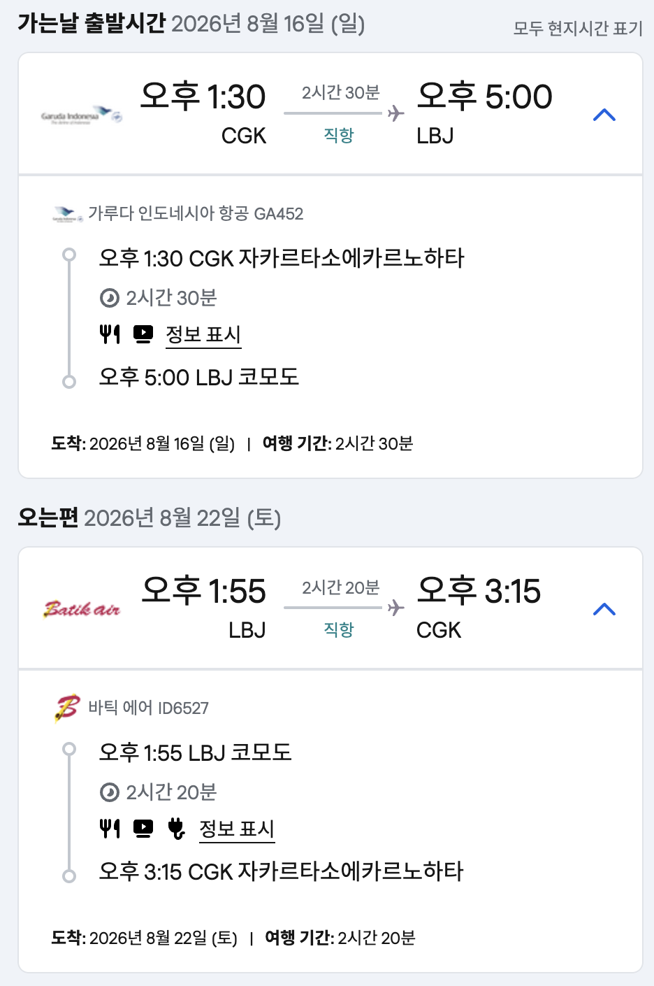 - 연결 발권: 인천-자카르타-코모도 수하물 자동 연결로 환승이 편리합니다.