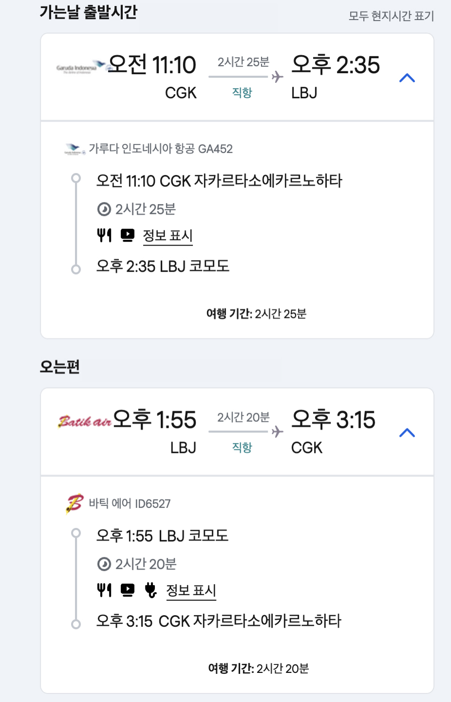 - 연결 발권: 인천-자카르타-코모도 수하물 자동 연결로 환승이 편리합니다.