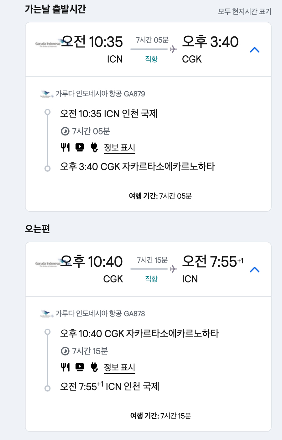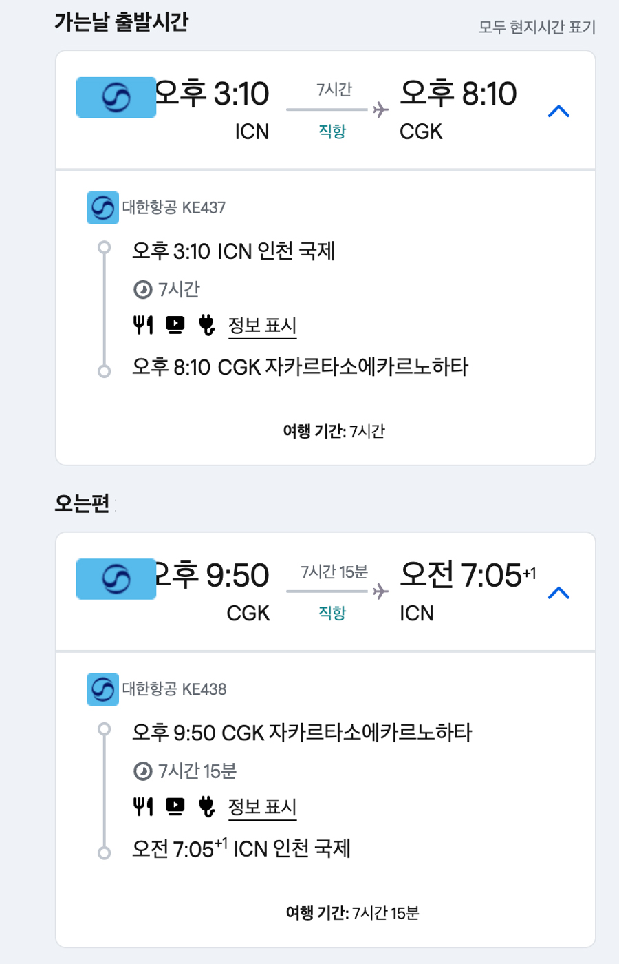 - 7/15(목): 인천 출발 → 자카르타 도착자카르타 공항 내 호텔 1박 (개별 예약)